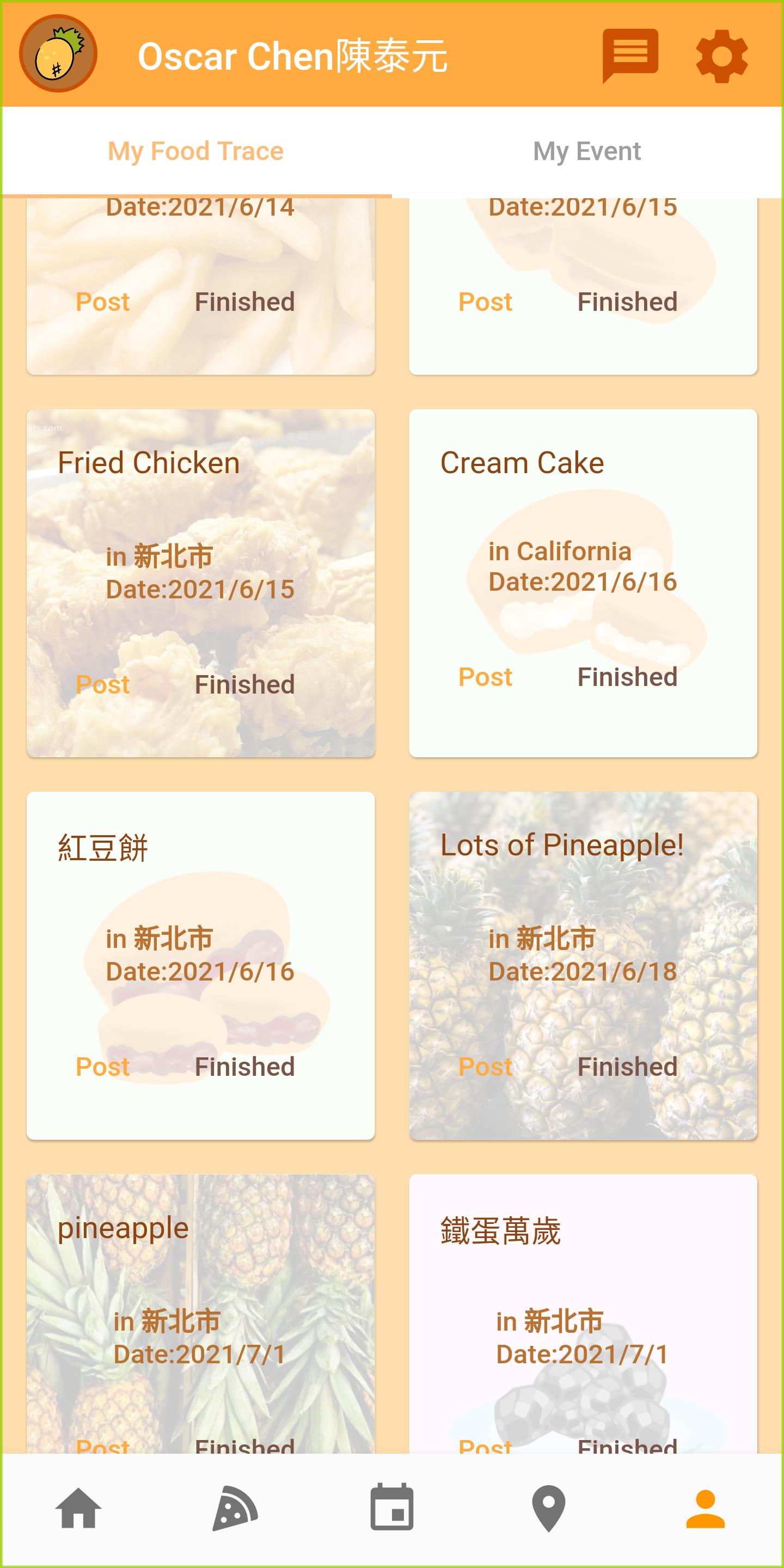 - Profile_TabPage(Food Trace page, Event Page)