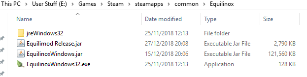 Equilinox.jar(on Windows this isEquilinoxWindows.jar), and rename the Equilimod file to what the Equilinox file used to be called (EquilinoxWindows.jarfor Windows,EquilinoxLinux.jarfor Linux, etc).