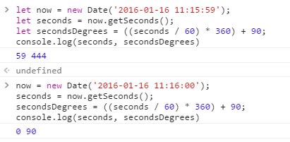 - So, when seconds hand was at 59, secnDegrees was at 444 degree & once seconds hand is at 0