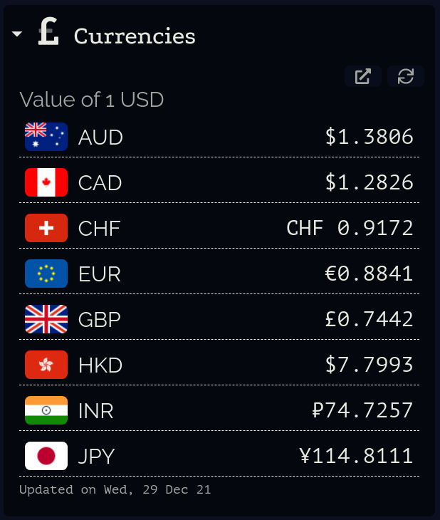 --widget-text-color- Text color, defaults to--primary--widget-background-color- Background color, defaults to--background-darker--widget-accent-color- Accent color, defaults to--background