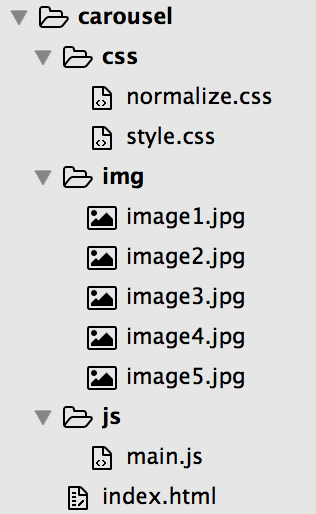 Let's take a minute and think about how to approach building a carousel. We want images to be lined up in a row and slide from one to the next, so we will initially lay out our page something like this: