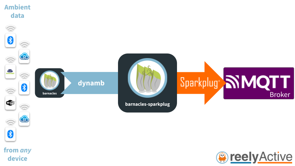 barnacles-sparkplug ingests a real-time stream of dynamb objects from barnacles which it publishes via MQTT as Sparkplug B payloads. It couples seamlessly with reelyActive's Pareto Anywhere open source IoT middleware.