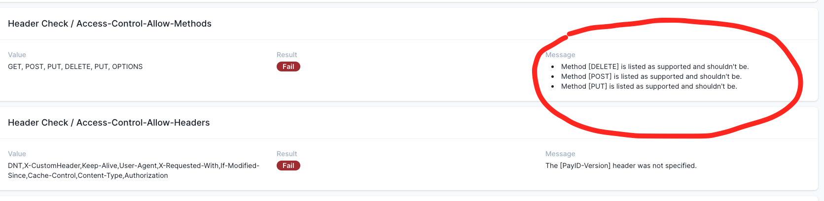 Access-Control-Allow-Methods header check marked as failed while headers are right according to validator rules: