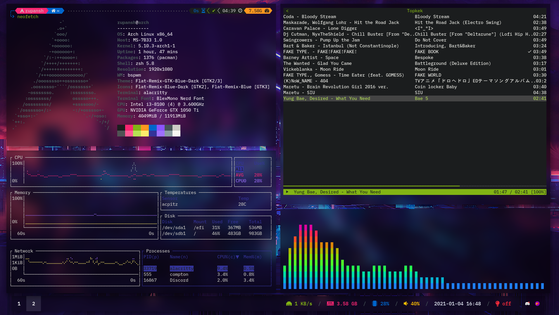 rofi pass flameshot redshift cli-visualizer bottom hsetroot neofetch ncspot