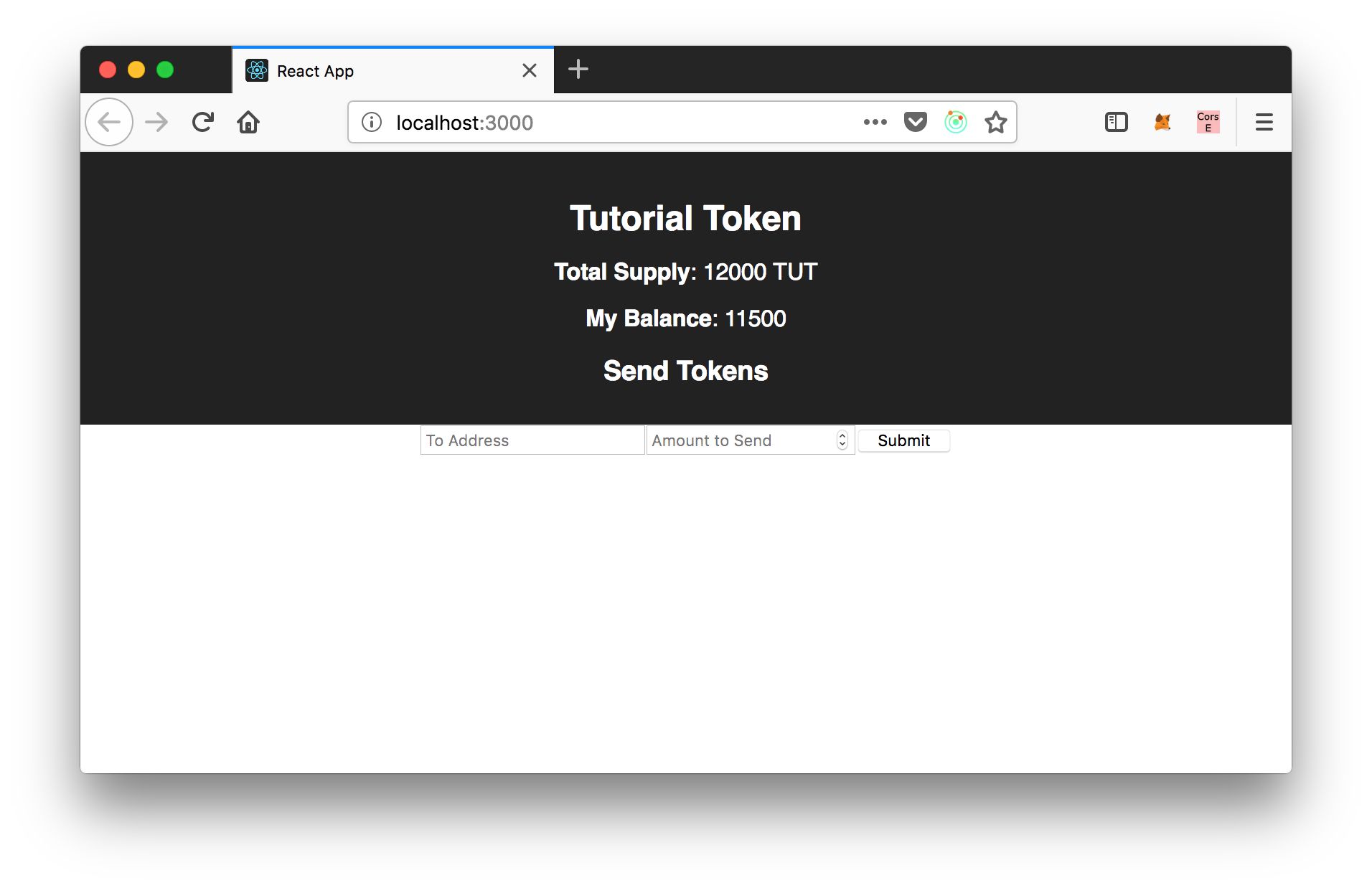 Login to Metamask using first private key from ganache-cli output. This account has all the Tutorial Tokens.