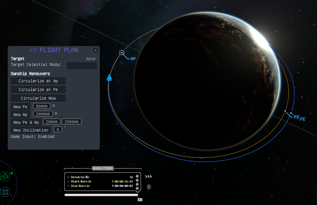 - Current Orbit Periapsis (click "⦾" button to set as Target Altitude)
