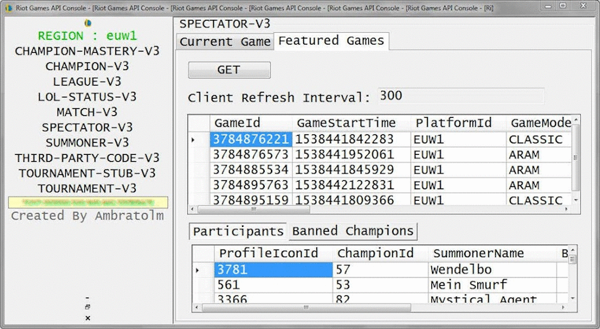 ApiConnection apiConnection = new apiConnection(apiKey, ApiConnection.RegionCode.euw1);- Setup an instance of SummonerV3 using the created connection :