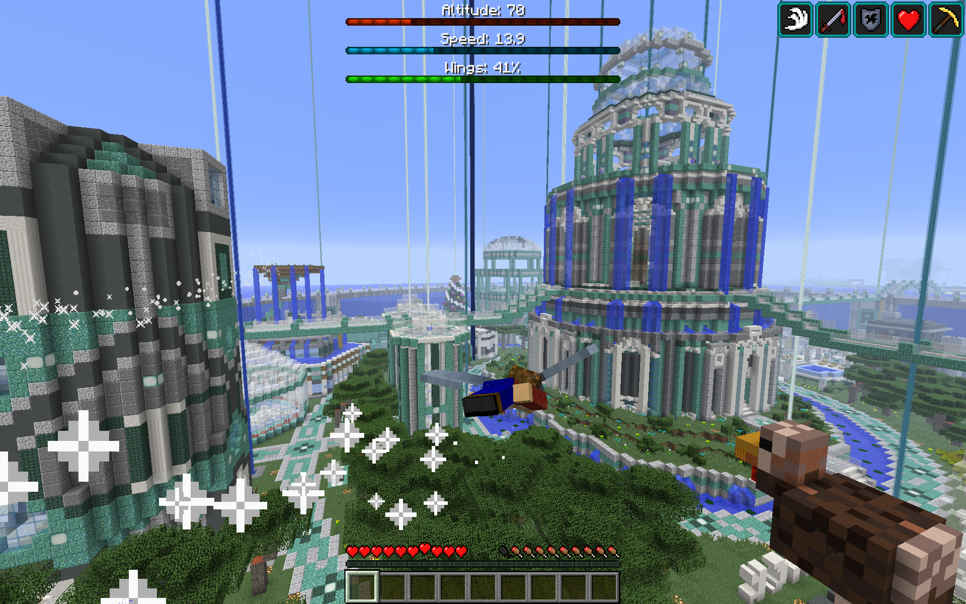 - Optionally shows the player a speedometer (in blocks/sec) when in powered flight.