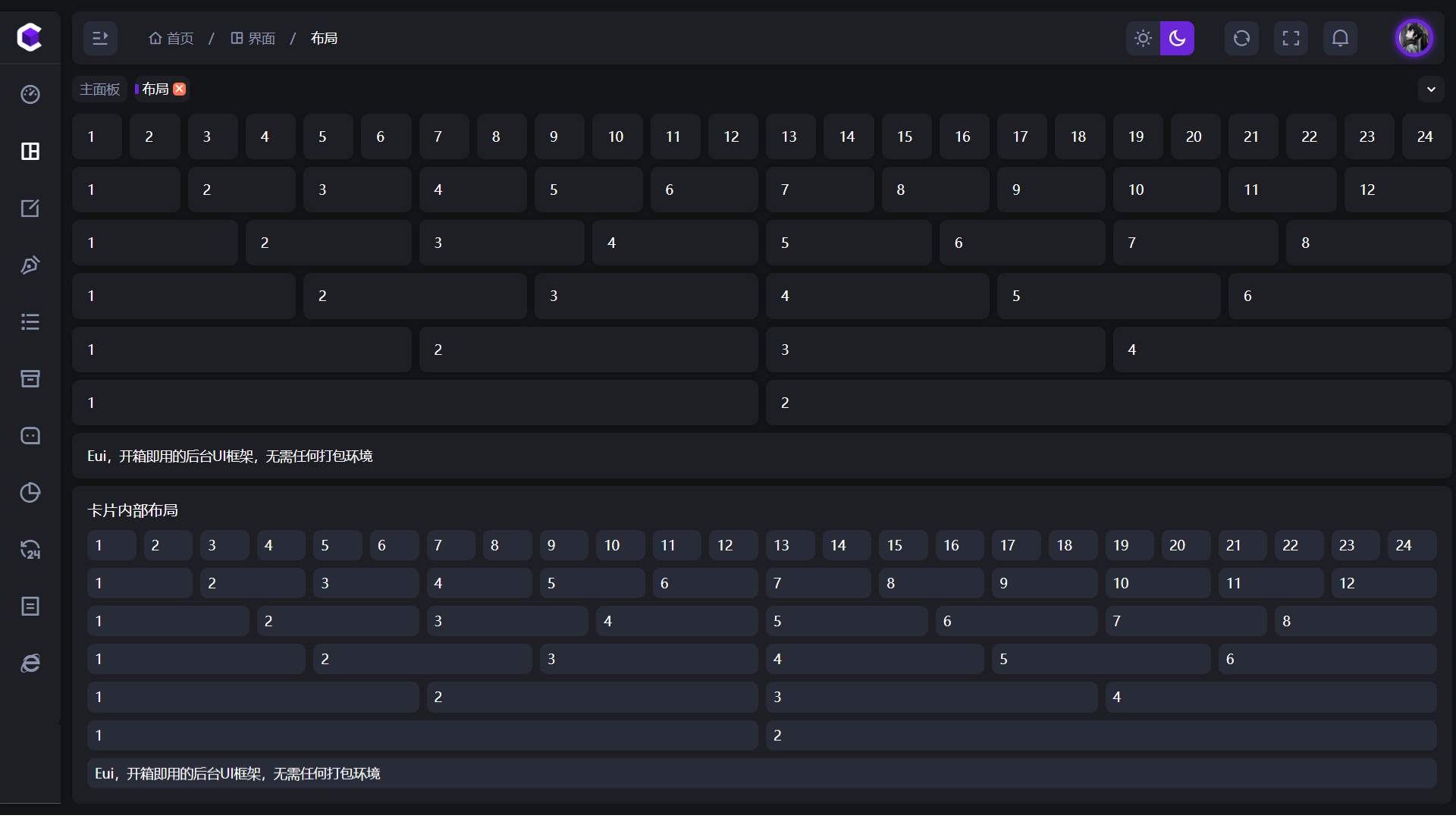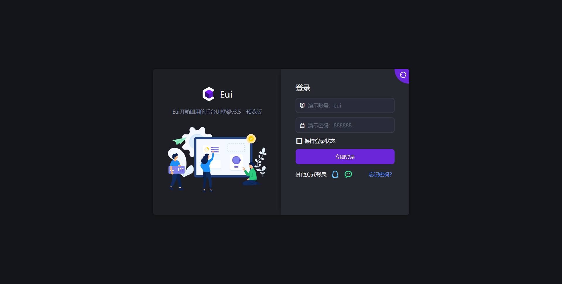 Eui 开箱即用的后台UI框架更新到了 v3.5 版本 🚀原生JS开发 🚀开箱即用,无需任何打包环境 🚀写法与原生HTML几乎一致。为不熟悉mvvm模式的开发人员提供了多一种的选择 🚀3.5版本累计更新超过200项 🚀基于alpine.js深度定制开发,具备了一定的MVVM特性 🚀极低的内存占用,开发环境毫无压力 🌻适合中小型项目,小众产品 🌻基于EUI3.5的完整商城后台UI即将发布 (现在开源的是2.0版本,v3.5新版本请查看官网授权说明) 官网 ** V3.5 新版本界面预览如下:**