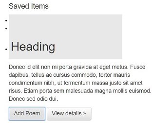 This Unordered List is where the title of a saved poem goes once a user clicks "Add Poem." But It keeps moving the entire <h2> element from line 103 to this list.