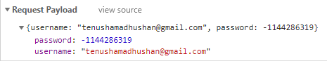 };Following is a user document saved in MongoDB with hashed password.