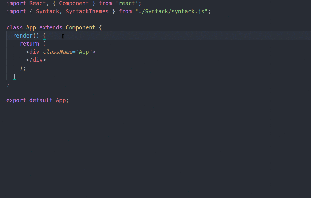 <Syntack theme='github' code={this.state.editedCode}/>