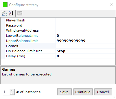 - Each strategy has a collection of games, each with properties