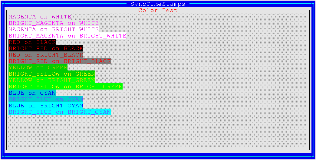 BOLDattribute orAIXTermcontrol sequences (terminal-dependent). Bright background is implemented using eitherBLINKattribute (RXVT family) orAIXTermcontrol sequences (terminal-dependent). - Pseudographics via either Unicode line drawing characters (if locale's codepage supports it -- i. e. for