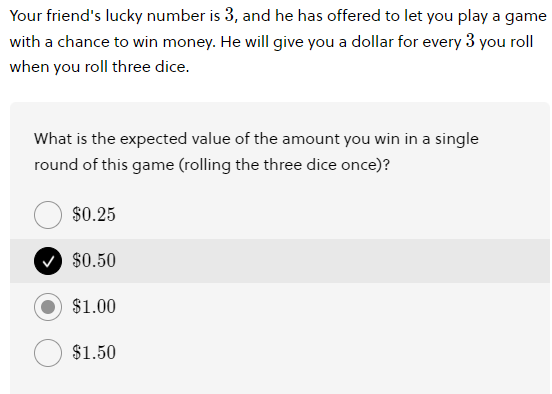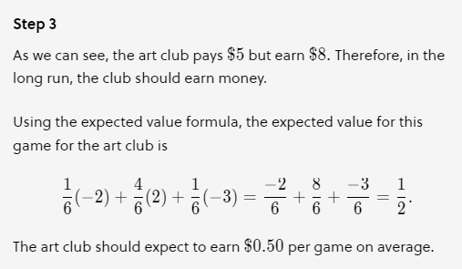 We were trying to determine not only if we should expect to gain or lose money in the long run, but how much. This number is called expected value and tells us what to expect, on average, in the long run.