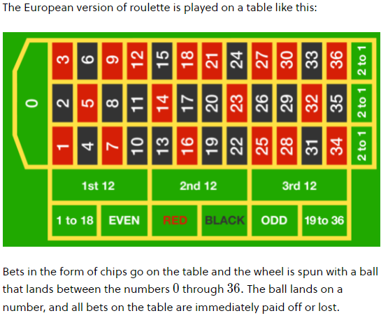 The “RED” bet wins on numbers colored red and “BLACK” bet wins on numbers colored black. They return 1:1 odds—that is, if a player wins, they win as much as they bet, doubling their money pile of that bet.