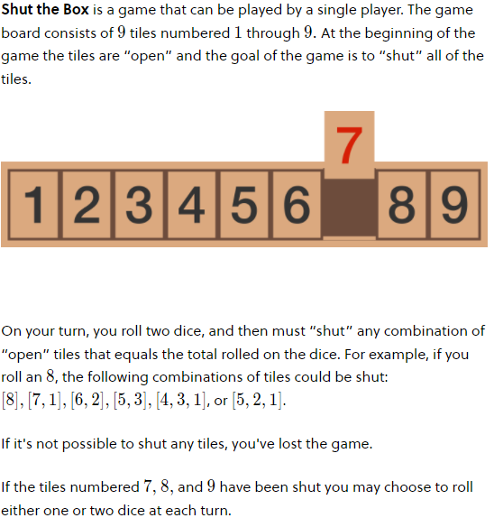 In the game of Shut the Box, one needs to think ahead to find the optimal strategy.