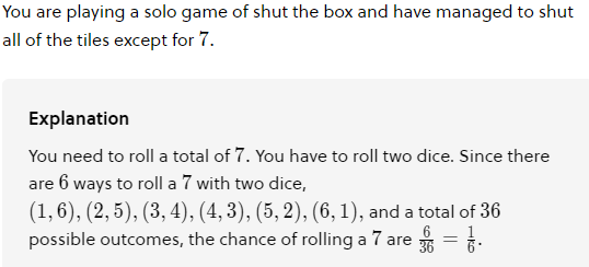 We saw that playing Shut the Box optimally comes down to comparing the probabilities of rolling different sums on a pair of dice.
