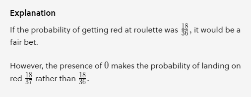 We found that on average, roulette players are expected to lose money. This makes roulette an unfair game — the house is expected to win in the long run.