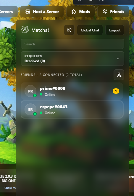 π Never Lose a Connection: Met someone cool on a random server? Don't risk losing them forever! Just ask for their Matcha! handle to add them, chat, and play together later.