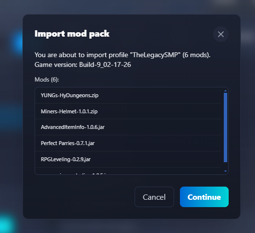 - Your friend clicks Import, pastes the code, and the launcher automatically downloads the exact mod versions you have.