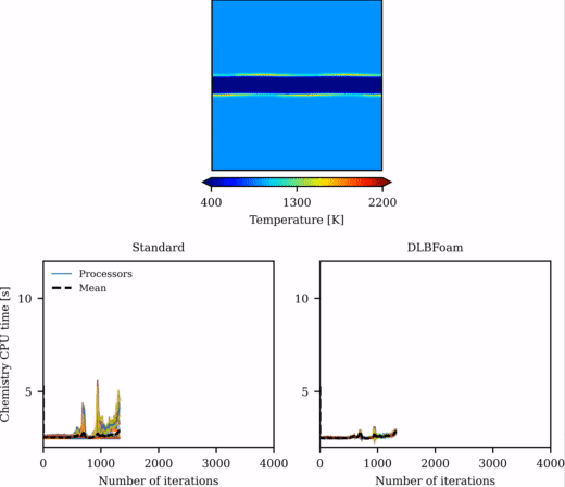 Load imbalance in parallel reactive simulations is an issue that causes very long simulation times in OpenFOAM simulations utilizing finite-rate chemistry.