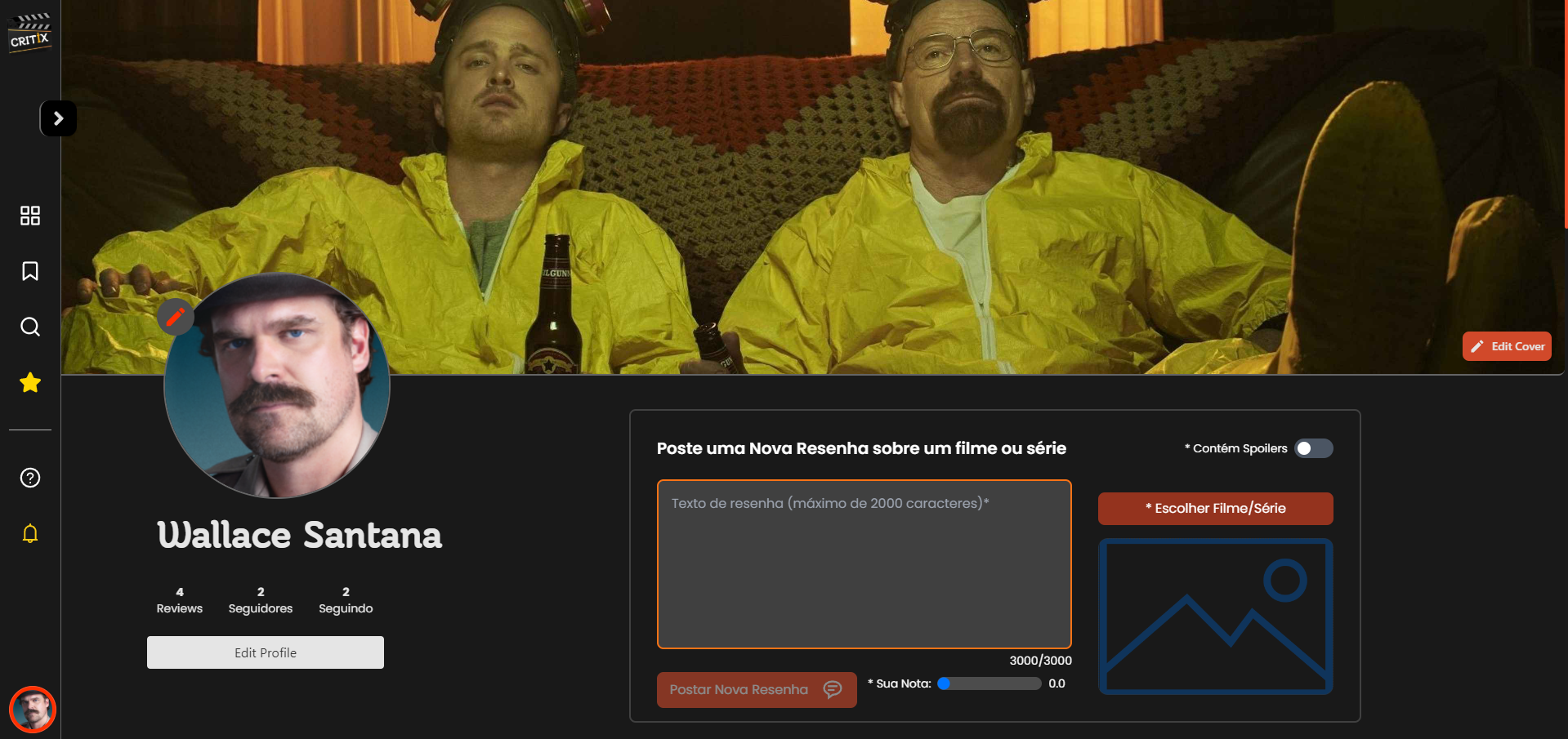 O Critix é uma plataforma de avaliação de filmes e séries. O frontend foi desenvolvido com React e consome a API do backend para fornecer uma experiência dinâmica e interativa aos usuários.