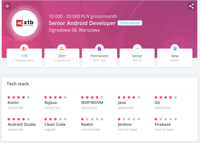 On the proper offer page, there are more skills that are required Highlight page:  Offer page: