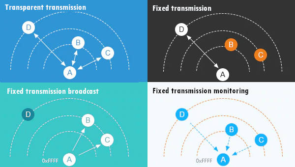 Normal/Transparent transmission mode sends messages to all devices with the same address and channel.