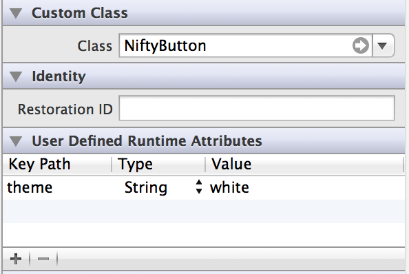 - In the Identify Inspector, expand the User Defined Runtime Attributes section.